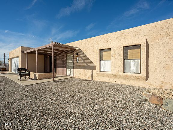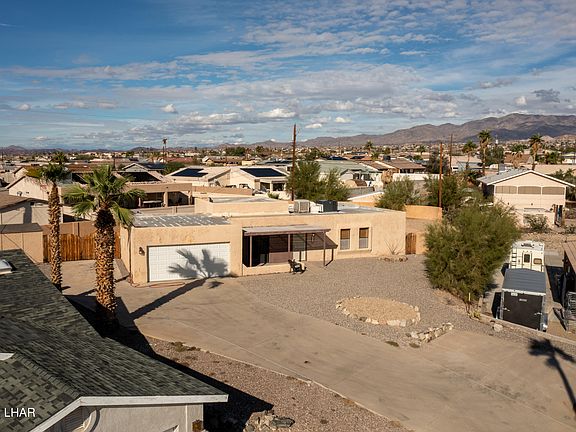 Havasu Gem with a Pool! Welcome to this charming 3-bedroom, 2-bath pool home with stunning lake and mountain views. As you come up the driveway, you'll find a small turnabout at the top and a moderately sloped drive with side parking perfect for your boat or trailer. Inside, the remodeled kitchen features upgraded cabinets, granite countertops, and modern appliances. The touchless faucet adds a convenient, high-tech touch — just wave your hand to turn the water on or off! Enjoy the open floor plan that flows beautifully into the living area, complete with a cozy wood-burning fireplace for those cool desert nights. Step outside to your private backyard — a sparkling pool with a Baja shelf, perfect for relaxing or entertaining on warm summer days. The pool is already plumbed for passive solar heating, so you can easily add that feature if you wish. AC unit is new and works amazing to keep you cool inside when no enjoying your pool. Don't miss this lovely Havasu gem — it's move-in ready and waiting for you to make it your own! BUYER TO VERIFY ALL DIMENSIONS AND PERTINENT INFORMATION.