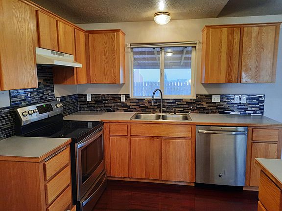 Single level, 3 bedroom 2 bath home. Vaulted ceilings and certified wood stove in living room. Double car garage and RV space. Large covered patio, fenced yard with 8 x 10 storage shed. Additional covered area with cement pad to store your firewood. Views of Barnes Butte. Recent exterior paint and newly painted interior.