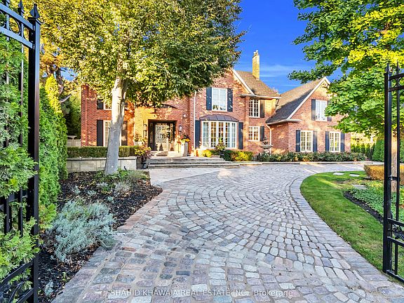 WOW !! Your LUXURY HOME search ends here !! Discover Epitome of luxury living to this mesmerizing Custom Estate Home in the Heart of Mississauga Road & Doulton Estate Neighborhood ** 101 ft x 157 ft Premium Lot with **Gated ,Grande & Architecturally Designed Interior** interlocked Stone Circular Driveway ** Backing onto breathtaking Serene views of Golf Course , Credit River & enveloped by lush Green Woods W/Full of Privacy. Featuring 5 +1 Bedrooms & 6 Bath ** 3 Car Garage W/ Finished Basement ** Absolute Galore & meticulously maintained with over 7,000+ Sq ft of Luxury living space * This residence showcases timeless interior/Exterior W/ exceptional curb appeal *Soaring ceilings , Pot lights & built-in speakers thru out * Step inside & be captivated by the grandeur of this residence with sweeping Wrought Iron staircase, Prodigious Elite formal living space w/ floor-to-ceiling Heighted windows & Custom Mantel Fireplace W/ soaring 27-ft Coffered ceiling offers a space that is both impressive & inviting * The interior is a tribute to rustic luxury, w/ reclaimed wood Flooring adding warmth . The Family Rm Centered Around A Stately F/P Offers Idyllic Views Of Picturesque Backyard ,While Formal Dining Sets The Stage For Elegant Gatherings. The Chefs kitchen is a culinary dream, featuring high-end S/S Wolf, Subzero & Miele appliances, Granite countertops & bespoke Cabinetry, w/ a convenient pass through servery. The Adjacent Sunlit Breakfast Area is Perfect for Dine-in . this home offers three levels of luxury. Ascend To The Upper Level To Find 5 Beautifully Appointed Bdrms, Each Designed For Relaxation. The Primary Suite Is A Sanctuary w/ 11ft cathedral ceiling, A Private Terrace Overlooking The Garden, W/I Closet & Spa-Inspired 5-Pc Ensuite. The Finished Lower Lvl Expands The Home's Versatility, Offering A Spacious Rec Rm w/ stone fireplace , Huge Glass Wine Cellar & Look Out windows, a secondary full size kitchen, Home Gym, Nanny Suite** True Pride of Ownership **