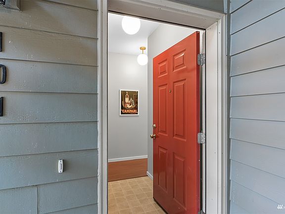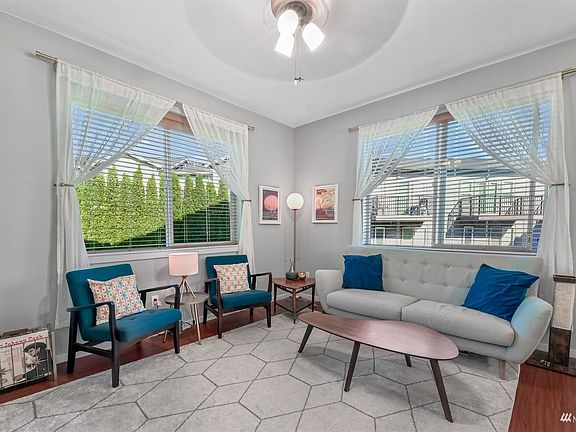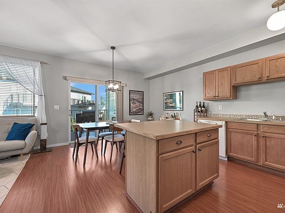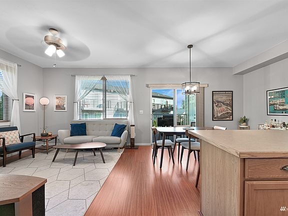 Light and refreshed, this convenient ground level condo offers a wonderful life in the heart of Ferndale. Excellent use of space with open floor plan in kitchen and living room. Glass doors lead to your covered patio which also has an additional storage closet that locks. Primary bedroom has a massive walk-in closet and its own bathroom. Second bedroom is spacious and has a wall-length closet. Perfect setup for owner occupied or a rental. Laminate floors throughout, tile backsplashes & ceiling fans. Overall very well maintained. 1 parking spot in front + guest spots. Monthly dues are very low and help make this already affordable unit even more affordable!