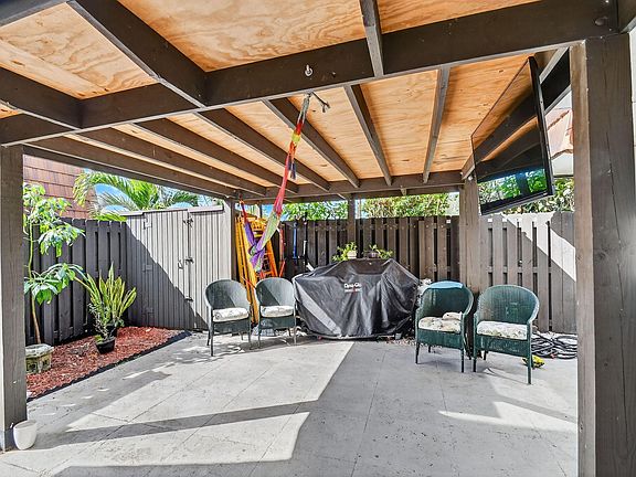 Welcome to this bright and Updated 2BR/2.5BA townhome in Greenacres. Roof 2022, A/C & water heater 2024. Remodeled kitchen w/SS appliances, modern cabinetry ,open layout, ceramic tile throughout. Range, water heater & dryer run on natural gas reducing monthly energy costs. Bedrooms w/large closets + linen/storage closet. Bathrooms upgraded. Patio w/custom pergola perfect for entertaining. First floor includes small enclosed room; seller can remove wall to restore open living area. Close to shopping, dining, schools, hospitals, 15 min to beach, 20 min to airport.