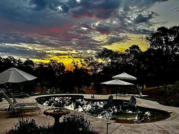 Most sought after Clements neighborhood, this property is perfect for horses, livestock and great soil for crops with a nice roll and stately protected Heritage oak trees. A gorgeous remodeled 3 bedroom 3 bath home, gourmet kitchen with large walk in pantry and guest house are inexpensive to operate with its solar electric system. Two super soaking tubs, one in main house bathroom and one outside the guesthouse are perfect for relaxing. Beautiful floor to ceiling natural stone fireplace with hand forged iron compliments a beam hearth salvaged from the barn. Upgraded tile floors for easy maintenance throughout. A large 60x70 barn with an adjacent large shop and detached extra deep garage gives you plenty of storage. RV setup with septic and hookups. Permitted for modular home, garden cottage with vintage farmhouse sink, redwood deck is situated in the vegetable garden with established table grapes and fruit orchard. Custom chicken coup built with aviary, Tuff Shed with hot cold water and electric and front loading washer and dryer for the guesthouse. New 50 year seamless metal roof, 650 sq ft covered porch entrance. Fully fenced with electric gates at the main residence driveway and to the barn and guesthouse entrance. extra large width driveway entrance to barn area perfect for heavy equipment, commercial vehicles with easy access to guesthouse. Fabulous salt water pool with fountain jets, sockeye flagstone beach entry and Acapulco lounge deck make hot summer days enjoyable. Five individual lawn areas make for perfect park like settings.