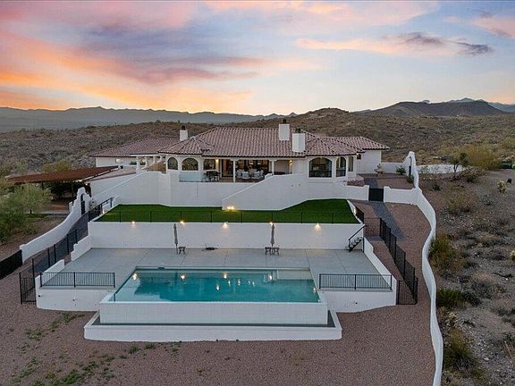 Breathtaking 360° mountain views on 30 private acres in Goldfield Ranch! This remodeled modern farmhouse design offers 3 beds, 3 baths, a designer kitchen, spacious living areas, and a luxe primary suite with a large walk-in closet. A private 2-bed, 1-bath guest house includes a full kitchen, laundry, and covered parking. Enjoy an infinity pool with views of the Superstitions, multi-tiered backyard, and a 3,400 sqft RV garage with 20' ceilings, indoor pickleball, basketball, volleyball, and walk-out party deck. 4 bonus rooms for theater, office, crafts, or music. Borders Tonto National Forest. Includes horse corrals, arena, hiking trails, and secluded ramada. Minutes to Fountain Hills, Scottsdale, and Saguaro Lake. Sale includes 3 Parcels: #219-16-050-C, #219-16-051-H, & #219-16-050-D.