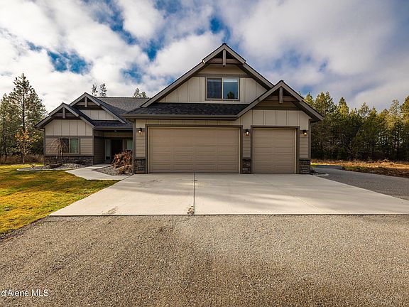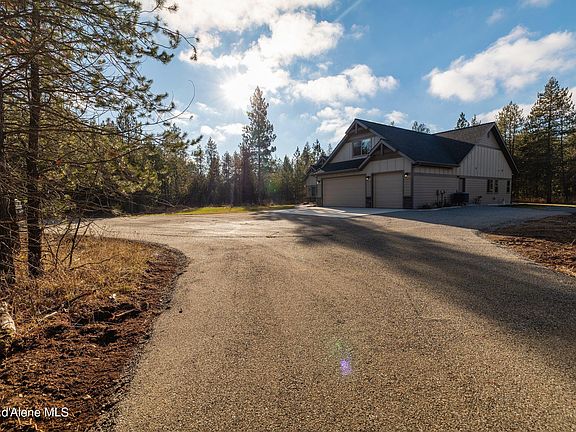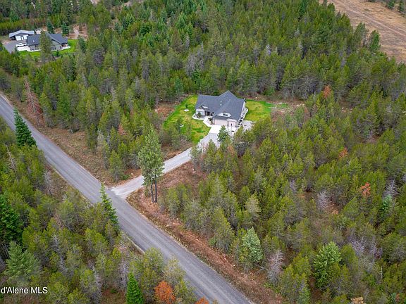 Single level Rancher w/ bonus on 20 acres and only mins to town. Built in 2020 this beautiful home is like new and currently move in ready. The owners recently cleared a building area and widened the driveway making an area for You to build your all new shop at your leisure. Boasting 3 beds 2 baths a bonus over the 3 car finished garage with 2,190 sq feet and a popular floor plan. The vaulted ceilings and open concept design are to be desired living room has the perfect gas fireplace with stone accents. Socialize in a kitchen that has an abundance of Knotty Alder cabinets, beautiful granite countertops, oversized island, stainless appliances, and large pantry. The spacious primary suite offers access to a covered back patio and the primary bathroom has a tiled walk-in shower, soaking tub, dual sinks, laminate flooring and spacious walk-in closet. This is a rare chance to have true privacy in North Idaho with the features you want, priced to sell, move in ready and no HOA.