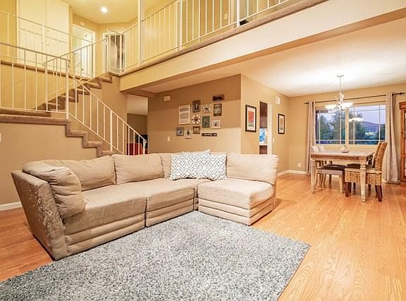 Fantastic VIEW home in the heart of Saugus! Great layout--approx 1776 sq ft, 4 bedrooms upstairs, master bedroom has walk-in closet. Updated kitchen and bathrooms, seperate laundry room, easy maintenance laminate floors throughout with travertine-like tile in the kitchen and baths; Open living room with vaulted ceilings and gas/wood burning fireplace. Spacious dining room leads to kitchen and outdoor covered patio, perfect for entertaining. Kitchen has solid wood cabinets, granite countertops and newer appliances. Inviting family room with direct access to the amazing backyard. Perfect entertainers space with wood patio cover and concrete deck. Lots of areas to enjoy the beautiful view! No direct, backside neighbors. Dual pane windows. Direct access 2 car garage. No MELLO ROOS, and one of the lowest HOAs. At only $64 a month, enjoy the community pool and tennis courts. Just minutes from award-winning schools, Central Park, shopping and freeway close. This home won't last!