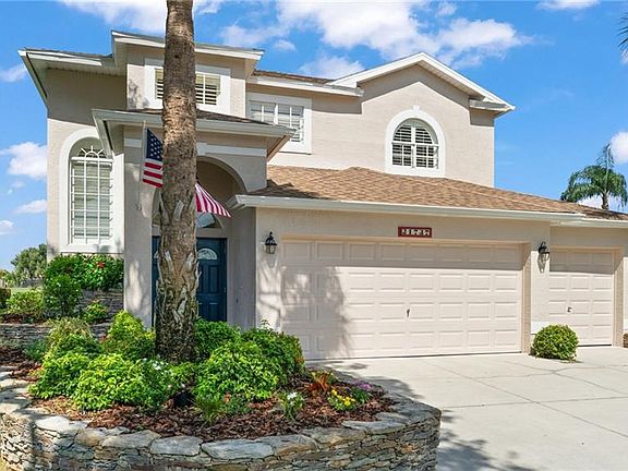 Welcome to this beautifully designed two-story pool home offering 4 spacious bedrooms + den, 2.5 baths, and a 3-car garage. Situated with a desirable western exposure, you'll enjoy breathtaking sunset views over the oversized backyard, which overlooks a tranquil lake and golf course. The entrance is adorned with a custom, three-tier Tennesse fieldstone irrigated flower garden, creating an elegant welcome. Inside, the first floor boasts durable commercial-grade pet friendly tile, plantation shutters throughout add timeless style and privacy. Nestled in a fantastic community with lots of amenities and low HOA fees. Don't miss the opportunity to make this incredible property your new home !