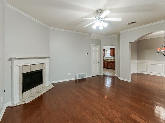 This 2,124-square-foot Cordova rental home will impress you with its elegant style. This three-bedroom house comes with two and a half bathrooms. In the living room, a cozy fireplace acts as a focal point. This room also benefits from beautiful flooring, crown molding, and a lighted ceiling fan. The kitchen feels refined thanks to its stainless steel appliances and modern countertops. A window over the sink brings in natural light, and a peninsula increases the amount of space you'll have when preparing meals. Get some rest in the main bedroom suite, which has a stunning vaulted ceiling. In addition, it treats you to a walk-in closet as well as a garden tub and walk-in shower. Call today for a showing!