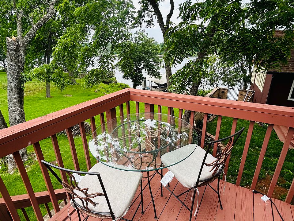 Above Garage apartment, furnished and utilities included. 1 bedroom with a queen bath, full kitchen. Deck overlooks a lake, sunset each night through the trees.