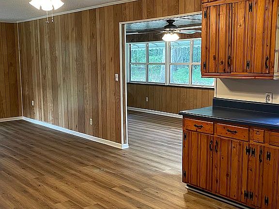 Country home for sale, open kitchen and family room. Florida room, original knotty pine kitchen cabinets, original oak flooring in 3 bedrooms, hallway and living room. Pro core waterproof luxury planks with 30 year warranty in the kitchen, family room, Florida room and bathroom installed 2021. New hardware on doors, cabinets, Hunter ceiling fans throughout. Trane hvac with transferable warranty until 5-5-2027. Tin roof installed in 2015. Fireplace insert with 2 wood boxes in family room. In 2007 an Expert Water Solutions Water Filtration System installed, new well and pump installed, bathroom remodel and covered carport roof extension added. Detached, block workshop with covered storage attached.