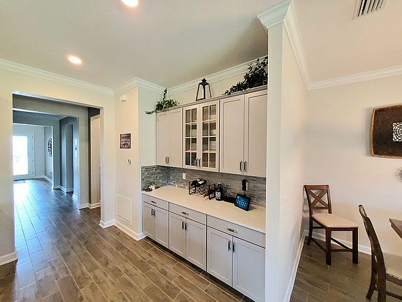 You would love our significantly upgraded 2 yr old home in Bridgewater at Viera, a new gated resort style 55+ community in the incredible “planned community” of Viera. This well cared for home welcomes you with a beautiful upgraded entry door and features 3 bedrooms, all with private baths, den/flex room, a convenient ½ bath/powder room, as well as an expansive great room, dining and kitchen space. Open the great room sliding doors and find yourself in a covered, screened terrace facing a private backyard permanently bordered with natural Florida flora. Cabinets throughout have abundant upgrades. The kitchen island includes a single deep stainless steel sink surrounded by a dazzling quartz countertop, used in the baths as well. Also in the kitchen is an upgraded electric induction range with a built-in look. The walk-in pantry is spacious. Master suite includes huge bath with beautiful walk-in glass shower and large walk in closet. There is abundant storage throughout the home. Floors throughout are of upgraded tile wood plank except for lush upgraded carpet and pads in the bedrooms. Walls have custom upgraded paint with several decorator accent walls. Crown molding, wi-fi certified home, with automation throughout. Screened in lanai, completely guttered exterior, water softener, and the list goes on. The community includes a beautiful private amenity complex with heated pool, spa, firepit, state of the art fitness center, pickleball, tennis and bocce courts. (2nd phase amenities under construction.) Buyer’s agent welcome!
