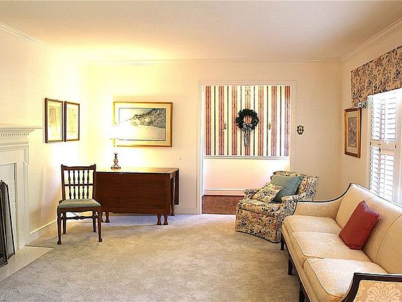 Gas log fireplaceBrick and sidingLush rear yard plantingsBreakfast areaOpen kitchenMature treesUtility and laundry rooms