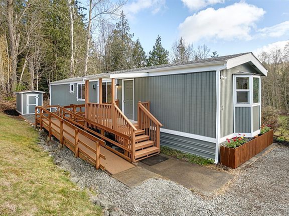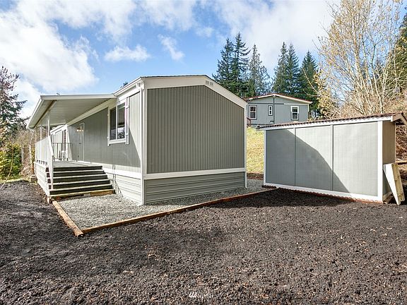 Nicely updated home in great condition. Located on a large private lot in Hilltop Haven Park. Front and back covered decks. Room to park up to 5 vehicles in the driveway. Good condition 6x12 storage building is included. Brand new paint inside and out. all new floor and window coverings. Newer gas furnace and freestanding stove. Full slab underneath. Space rent is $500 per month. Convenient location close to public transportation, I-5, parks, and shopping.