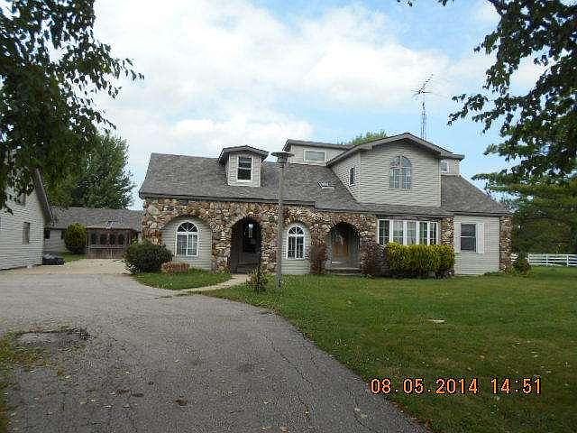 Large home with 8+ acres, pole barn and 3car detached. Great for hobby enthusiasts! Stone fireplace in family room, large Master Suite with whirlpool tub. Bonus den/office. Lots of potential! Room sizes have been estimated. Seller will pay up to $500 Home Warranty for owner-occupants if requested in offer. Eligible under the Freddie Mac First Look Initiative for primary & secondary home buyers thru 10/15/14