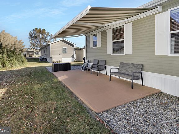 LIKE NEW IN WATER ACCESS COMMUNITY! Nestled in the charming marina community of Rehoboth Bay MHP, this delightful 2015 double-wide is an inviting retreat just 7 miles from the Rehoboth boardwalk and beaches. This home is designed to impress, offering an open-concept layout that’s bright and airy, enhanced by vaulted ceilings and a seamless flow between the kitchen, living, and dining spaces. The kitchen is a chef’s dream with spacious prep island, ample cabinetry, and newer gas range and dishwasher -- both installed in the last year. The primary suite is an oasis with double sinks, walk-in shower, and plenty of storage. Down the hall you will find two additional guest bedrooms that share a full bathroom. A cozy front porch is ideal for enjoying your morning coffee, while the side patio, complete with a motorized awning, offers a perfect setting for outdoor dining and relaxing afternoons. The outdoor shed offers plenty of additional storage space for all your landscaping tools and beach gear. Community amenities include a Bayfront pool, tennis courts, playgrounds, private beach, crabbing pier, boat slips (for lease) & a community boat ramp. Golf carts are permitted in Rehoboth Bay. Land lease is $725/month which includes water service & trash/recycle. Buyer is subject to park approval approved based on credit score, income verification, and criminal background check. Buyer will have a 3.75% DMV documentation fee as part of their closing costs.