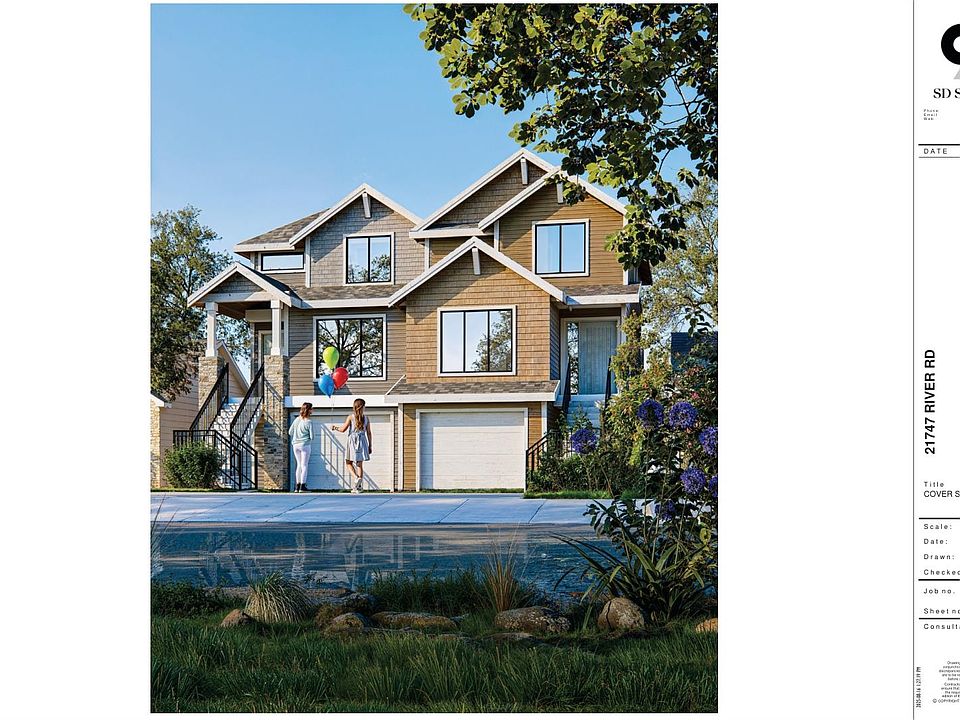 River Road Heights - RS-1b premium lots on River Road. Allows for a FOUR PLEX under the new SSMUH Small Scale Multi Unit Housing. Great location with easy access to commuter routes, walking distance to school, town, the hospital & the West Coast Express. With over 7600sq ft on flat clear lot, this is an ideal project for a small builder . Call your Realtor to reach out for the available survey, civil &, geotech assessment. Property is on the Fraser river Escarpment but has storm sewer. Buyer to make all their own building inquiries with the city. 21741 River Road also available, for a total of 8 units PRICE IS FOR LAND ONLY , draft plans attached