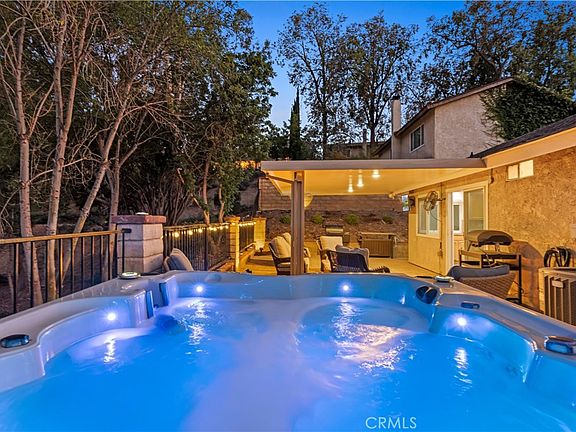Welcome to your Saugus home with a fantastic view! This 3 bedroom, 2 bathroom, SINGLE STORY home is right across the street from the park making the perfect location for kids as well as dog owners! Inside you’ll find it bright and welcoming with an updated smart thermostat & gas fireplace to keep your family cozy. The living-room and master bedroom feature vaulted ceilings and ceiling fans in every bedroom. The master bedroom includes a perfectly updated en suite private bathroom and sliding glass doors leading right to the outdoor spa. The kitchen is bright with plenty of storage space and room for creating family meals. A second set of sliding doors leads from the kitchen to the backyard making entertaining effortless. The backyard has been beautifully updated with a mountain view! You’ll love your private oasis that includes shade from the new patio roof with an outdoor fan, a natural gas fire pit, a relaxing spa, and plenty of space for cooking & year-round entertaining! Leased Solar and direct garage access. Convenient location, close to award winning schools, shopping & Central Park. NO MELLO ROOS & LOW HOA with amazing amenities such as pickleball court, tennis court, pool, and 4 different parks to enjoy.