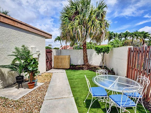 Patios On The Park is a charming community located in the heart of Boca Raton. Rarely available, this spacious corner villa has 3 BED, 2.5 BATH plus an oversized 1 car garage. Soaring ceilings, multiple private patios and atrium bring natural light and nature into your home. Wood floors throughout, 2 primary bedroom suites, generous closet space and an eat-in kitchen. AC unit, refrigerator, range, dishwasher, washer & dryer replaced in 2023. Low HOA fees $90/month. Excellent location, minutes from oceanfront parks and beaches, fine dining, Town Center Mall, Mizner Park, tennis and golf. Approximately 30 minutes from Fort Lauderdale and Palm Beach International Airports.