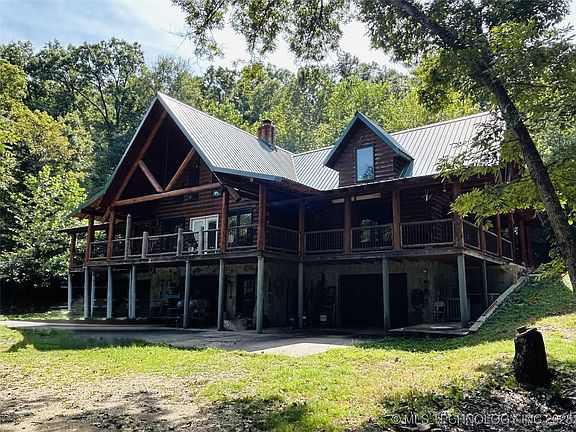 Welcome to the Wild Rose Ranch nestled in the heart of Cherokee County in the Ozarks. Just 1.7+/- miles via scenic Hwy 10 to the pristine waters at Arrowhead Resort on the Illinois River. This is the builders' masterpiece and personal residence and hosts 4bed & 4bath on 40+/- acres of land rich in natural resources like the spring-fed creek and pond, pines and hardwoods, and abundant wildlife including whitetail deer, elk, bear, hog, and turkey. Experience unparalleled craftsmanship and put the finishing touches on this timeless custom, kiln-dried and treated, Douglas Fir, log home. The full wrap-around porch invites relaxation and breathtaking panoramic views. Full walk-out basement accessible from mud room on main level includes 3 work bays with extra electric and overhead openers, a 12'x16' safe room with the 4th bed and bath, food/ammo/prepper storage, and well water purification system. Cabin 2 is 2-bed 2-full baths with pellet stove, amazing sunroom, and covered decks in front and back. Large 40'x50' 2 bay shop with electric. Cabin 3 is 3-bed 1-bath and needs some loving TLC to bring it back to life. The Wild Rose Ranch currently operates as a private family residence. It is an exceptional opportunity for multi-family living, commercial investors, and STR to make this a vacation lodge experience and river outfitter like Big Cedar. Schedule a private tour today.