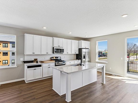 This beautifully designed, end-unit townhome is dressed to impress with plenty of open-concept living space. This home boasts 3 bedrooms and 2 1/2 bathrooms. Entering from the garage you will be greeted with a spacious finished recreation room that can be used as an office, workout area, or an additional family room. Head up the stairs and find the spacious open-concept living area. A modern galley kitchen showcases a large center island, which allows for extra seating and plenty of countertop space. The open family room features a stunning electric fireplace, which is sure to create a striking focal point, as well as a main-level half bath that is convenient for everyone. Upstairs you’ll find all three bedrooms, including a grand owner's suite, which boasts an attached bathroom complete with carefully-selected modern fixtures, and a spacious walk-in closet. The laundry room is conveniently located upstairs with the bedrooms.