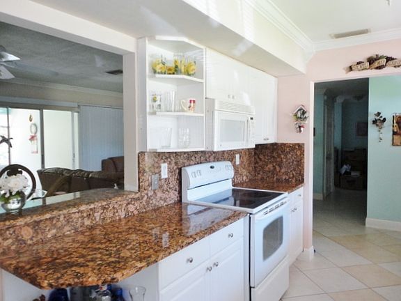 This Wonderful 3 bedrooms, 2 baths, CBS construction Home offers updated kitchen with granite countertops, Porcelain Tile thru-out, crown molding, updated Windows, Hurricane shutters, large lanai, stamped concrete driveway. Great Fenced, canal Lot with many Beautiful mature Tropical Fruit trees. Just hang your Hammock and enjoy long afternoons in your own private tropical oasis.