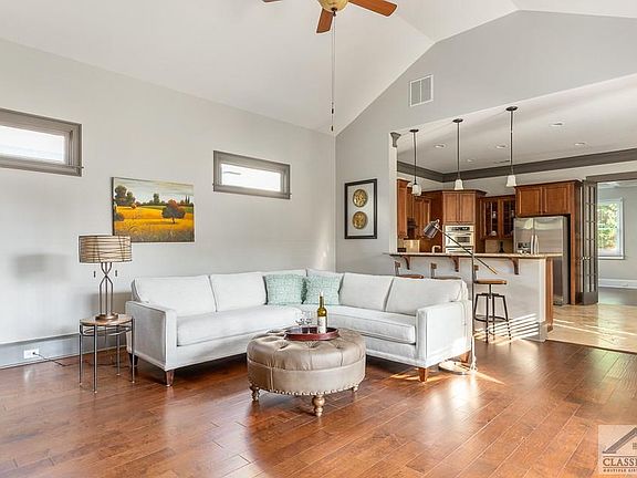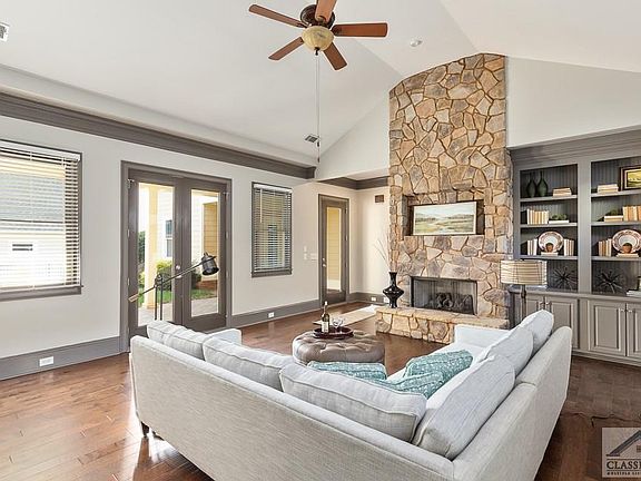 STUNNING COURTYARD HOME AVAILABLE NOW IN THE GEORGIA CLUB Charming 3BR, 3BA home located in sought after North Hill, convenient to club amenities! Double doors lead from the rocking chair front porch to a private courtyard. Off the courtyard is a detached guest suite w/ private bath. The main house has an open floor plan that lives large. The great room has a floor to ceiling stone fireplace, built-ins & soaring ceilings & opens into the kitchen & dining areas. The chef's kitchen, perfect for entertaining a large group or a quite meal at home, features custom cabinets, stone tops w/ tile backsplash & Jenn Air appliances. The dining room overlooking the courtyard comfortably seats a large group. Off the kitchen & dining area is another flexible room with hardwood floors & a coffered ceiling that would make the perfect music room, home office, fourth bedroom or game room. The private master suite features a large bedroom w/ hardwood floors & vaulted trey ceiling, a spacious bathroom w/ a must-see shower & a well-appointed closet w/ closet system. The master retreat is completed by a covered outdoor patio. The home also features a 3rd main floor BR, 3rd BA & a flex room. The home has a 2 car garage & a 3rd dedicated golf cart bay w/ sep. door. The home also features an open stair that leads to over 1100 square feet of unfinished space which has been stubbed in for a loft, bedroom, bathroom & additional bedroom or bonus space that could easily be finished. This space can also be left as walk-up storage w/ future potential should the approximately 2500 square feet of heated space & several hundred sq ft of covered outdoor space meet the needs of the next owner. The quality of construction in this home is noteworthy, including paver driveway & patios, mature landscaping, solid core 8 ft doors, hardwoods & tile flooring throughout the main house, plug-molding under the kitchen cabinets to keep the beautiful tile backsplash free of unsightly outlets, pre-wired for security, whole house audio, surround sound in the great room & central vacuum, 100 gal. Marathon water heater w/ lifetime warranty & blown insulation in the party wall. The courtyard is fully fenced & ready for a pool or spa. The courtyard has already been stubbed for gas for an outdoor grill or fireplace & cable has been run for game day television. The options are endless to make this outdoor space your own!