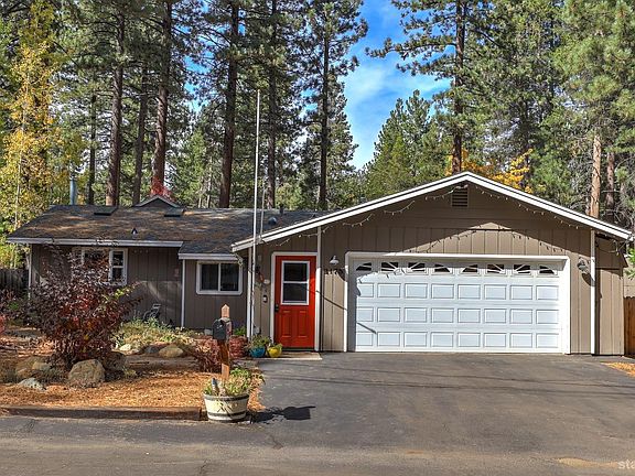 In Tahoe Island Park, a true Tahoe locals' neighborhood, sits this lovely and perfectly remodeled 3 bedroom, 2 bath one-story home. Its details are thoughtful: a gray and white color palette, a gas stove and wine refrigerator in the dining area, a vaulted great room with skylights and a bench seat. The feeling is homey and bright. Outdoors, the professionally-landscaped 11,300 sf yard includes mature native trees, a patio and pergola, and two sheds, designed for entertaining, relaxing, and gardening. This beautiful space, lovingly occupied for the past 40 years, is a place to treasure.