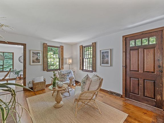 Simply STUNNING, Rare New England Bow House. Come home to this Cape Cod, inspired by the ships that have sailed the ocean for centuries. The style harkens back to shipbuilding methods that are reflected in the roof line of bowed timbers. Offering you warmth and historic presence with MODERN Conveniences too. BEAUTIFUL Super wide plank wood flooring throughout. New light fixtures, Fresh painted interior, Dual Fuel efficient HVAC system maintained by Curtis HVAC. Roof replaced a few years ago. Local Alberene Sourced Custom Soapstone Counters and Double Sink. Imagine having drinks in front of the fireplace with the hand hewn antique mantle, in your Hearthroom, with a pass through to the Kitchen. Dining Room Large enough to have all your friends and family over, leads to the comfortable screen porch. Primary Suite with private bath and dressing room upstairs. Previous owner used the 2 bedrooms on the main level. They are shown as a GORGEOUS office and family room opening onto a relaxing deck. Very flexible, livable floorplan. Hot Tub accessory panel already installed in basement. Private Wooded lot that Meriwether maintains at $55 a mow. Recently Fenced Back Yard, 2 gates by Foothill Fence Co. Can close very quickly too!