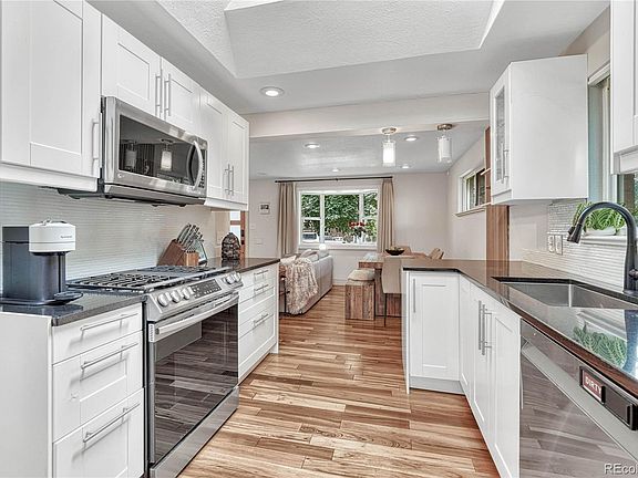 The backyard has a privacy fence and new turf (easy for upkeep.) The heated garage can easily accommodate four cars, sports and gym equipment. It is 1196 sq ft and rare to find at this price point and in the city. It has an epoxy floor for durability... easy clean up after a long Colorado winter.