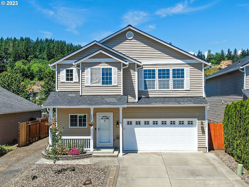 Welcome to this charming 4 bedroom, 2.5 bath home nestled on a quiet dead end street. This well-maintained residence offers ample space and desirable features throughout. Beautiful laminate flooring flows seamlessly throughout the main level. The living room boasts a cozy corner fireplace, perfect for those chilly evenings, and the updated kitchen features stainless steel appliances and a tile backsplash. Upstairs, you'll find all the bedrooms, including the spacious primary suite which features an oversized walk-in closet and a soaking tub in the ensuite bathroom. Enjoy year-round outdoor living on the large covered back deck, where you can entertain guests or simply unwind while overlooking the fully fenced yard with raised garden beds. Additionally, this property offers the convenience of gated RV parking, ensuring you have plenty of space for your recreational vehicles. The roof is just 1.5 years old with a transferable warranty of up to 50 years. Don't miss the opportunity to make this delightful home yours!