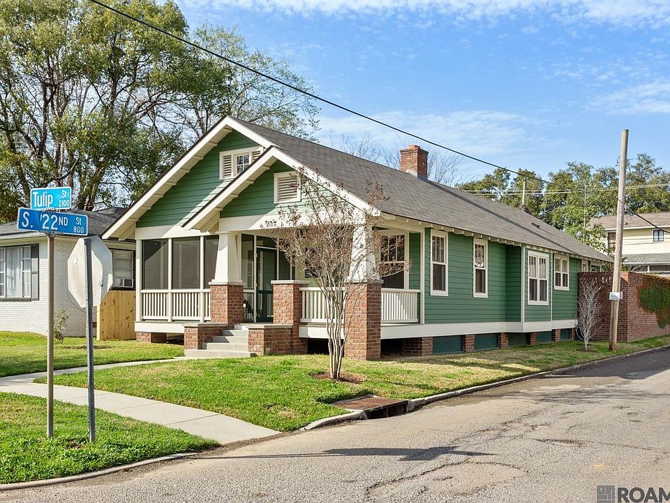 This is a 6 year old arts and craft bungalow home designed by an architect as his personal home. The floor plan of this two bedroom two bath home is semi-open with no wasted space. While it is a raised home on piers, a traditional slab was poured underneath and then piers. The siding is cedar with mahogany exterior trim. The floors are oak and kitchen counters are antique heart pine. Under the floors is R-19 Rigid closed cell foam for additional insulation. There is a Rumford wood burning fireplace and a 22 KW Generac whole house generator. The construction is as impressive as the appearance. The windows are Marvin tip & tilt wood windows. There is an on-demand water heater in the attic and R-35 attic insulation. Just as you would hope there is a front porch to sit and watch the world go by or visit with neighbors in this very walkable neighborhood. Part of the front porch is screened with a door from the primary bedroom and part of the front porch is unscreened. The open portion of the porch leads to the front door with a stained glass of a tulip by the renowned artist Steve Wilson. There is a garage from the alley, a brick privacy fence in the rear around the private courtyard and rear porch. Don’t miss seeing this incredible home.