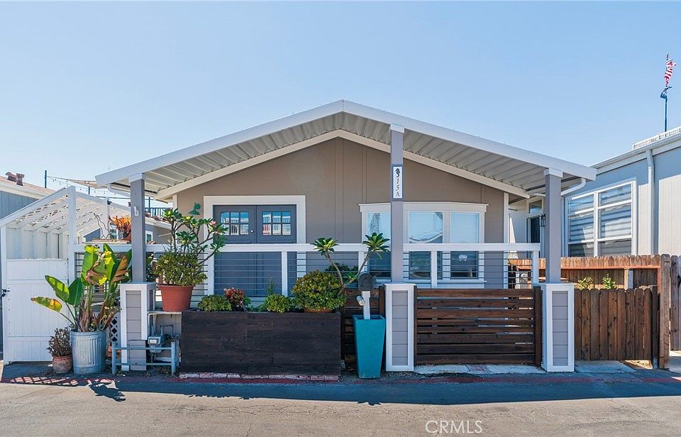 New upgrades. Come take a look or second look at how gorgeous this newly painted and upgraded beach close home looks! Fantastic chance to literally live cross the street from the famous Surf City Huntington Beach and Ocean with a stones throw from dozens of restaurants, bars, shops and so much more! This unit has a metal spiral stairway to the upper deck with endless views of Catalina and the sandy beach and ocean! It is truly incredible. Where can you live this close to the beach in such a beautiful house for this low of a cost???!!! Community heated pool year-round, clubhouse and guest parking all included in the Cabrillo Waterfront Village land lease. Several upgrades have been made to bring this home up to date! Very comfortable open floor plan with entry living area and kitchen and all 3 bedrooms and the 2 bathrooms located toward the back. Great lighting throughout the place. There is a washer and dryer side-room connected near the kitchen in the breezeway to exit the side yard that leads to the back rooftop deck and they can also be included as well as the refrigerator in the purchase. Many upgrades throughout! Freshly painted and move in ready! The front patio area is serene and quiet and has great potential for morning and evening relaxing. The upper roof-top deck is so amazing and a great addition to the already beautiful home and location. Land lease amount will be $3,461 for the new buyer. Includes pool, Spa, BBQ and Gym as well as water, sewer and trash. Washer, Dryer, refrigerator and certain furniture can be part of the sale as well.