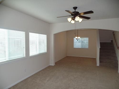 Functional plan that boasts 4 bedrooms with master down and secondary bedrooms up. Large living area with dining room and separate kitchen. Kitchen has 42'' cabinets and black appliances. Art niches, high ceilings, and arches make this home very attractive. Includes Microwave, Dishwasher, Oven/Stove, Refrigerator, and Washer/Dryer.