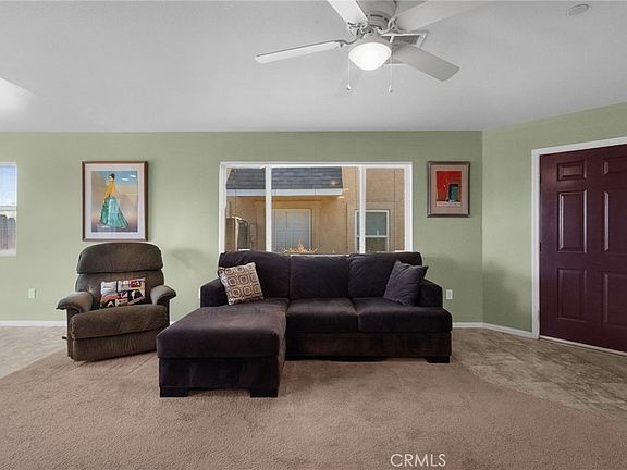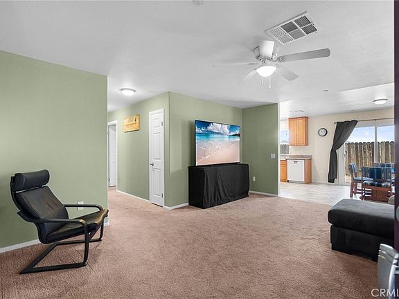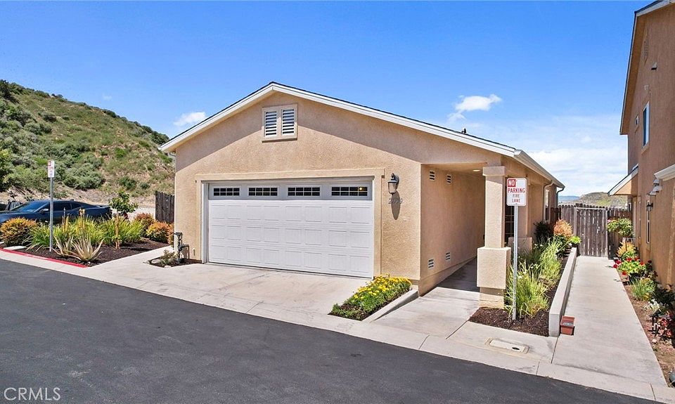 Attention U.S. Service Veterans! Step into the exclusivity of one of the few fully detached homes in the community! This Mediterranean-yellow single-story residence has been impeccably maintained since its construction in 2016. Ready for immediate occupancy, this home boasts a luminous and spacious floor plan, with well-kept carpeting and linolium flooring in the kitchen area, adorned with granite countertops. The dining area is bathed in natural light streaming through the expansive sliding glass door, leading to one of the largest backyards in the entire community. What sets this home apart is the absence of shared walls, offering unparalleled privacy. The generous backyard offers sweeping views of the Santa Clarita Valley. Unlike conventional homes, this property features wide hallways leading to the primary suite & en suite bathroom boasts laminate flooring and a soaking tub shower, accentuated by a large picture window framing the scenic vista. bathroom boasts laminate flooring and a soaking tub shower. Further down the hall lie two comfortably sized additional bedrooms, serviced by a second bathroom with linoleum flooring and a bathtub shower. Continuing through the wide hallways, you'll find an extra-wide attached 2-car garage, meticulously painted and maintained. This home also has one additional extra parking spot right in front of the garage for a combined 3 spaces. The house is equipped with Solar City (Tesla) panels, ensuring minimal to no electricity bills. Additional cost-saving amenities include a Tankless Water Heater. Nestled within a charming community, residents have access to a park complete with a playground, exercise equipment, community orchard, and gardens. Centrally located in Santa Clarita, the community offers proximity to shopping, restaurants, and top-rated schools. Experience the idyllic charm of the community, with inviting sitting areas, garden boxes for planting, ample guest parking, an active adult exercise station, and a dedicated play area for children. Conveniently situated near the 14 Freeway, public transportation, schools, and shopping, this is an opportunity not to be missed. Make this your home sweet home today! Disclaimer: To purchase in this community, you must be a VETERAN, ACTIVE SERVICE, or PRIOR service member in any military branch.