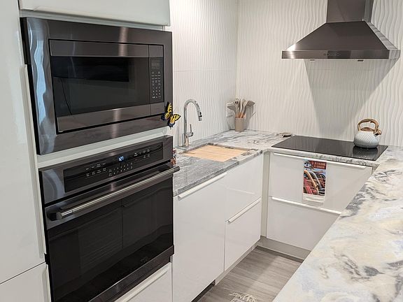 Inside, you'll find high-end finishes and top-of-the-line appliances, including a large TV, refrigerator, dishwasher, and a washer/dryer. The apartment features a water softener, and the bathroom is equipped with a no-fog, backlit mirror for an extra touch of luxury.