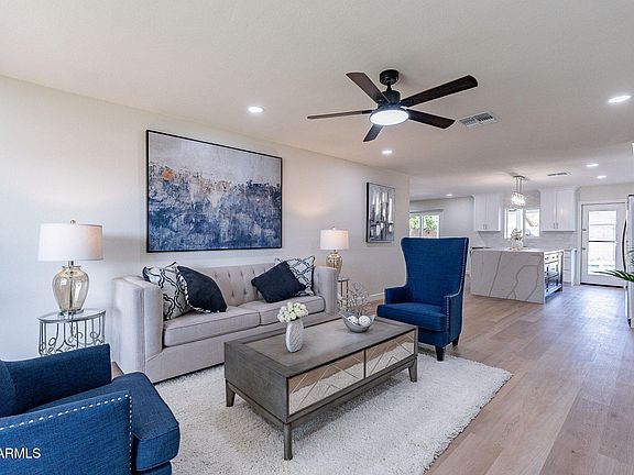 Just completed, this 3-bedroom/2 bath home has been completely renovated and redesigned, showcasing telltale touches of a contemporary/modern feel home with a luxury vibe. This home has been totally transformed, inside and out, and is 100% permitted by the City of Tempe with NO HOA. Providing a turnkey and designer lifestyle, this home has created an incomparable one of kind home in the much-desired South Tempe neighborhood of Optimist Park. The home features crisp neutral paint tones and earthy 8'' wide LVT floors, a stylish balance of formal spaces and cozy living. Upon entering you will immediately observe the new open floor concept with floor to ceiling fireplace, separate family room and living room areas with light-filled spaces everywhere.