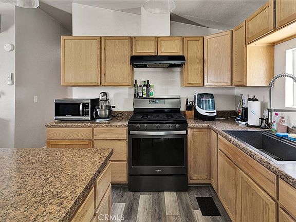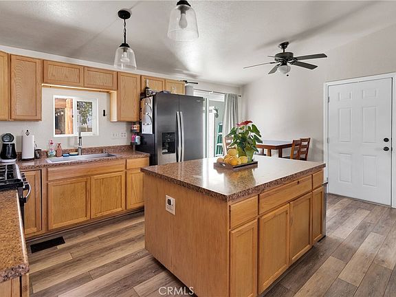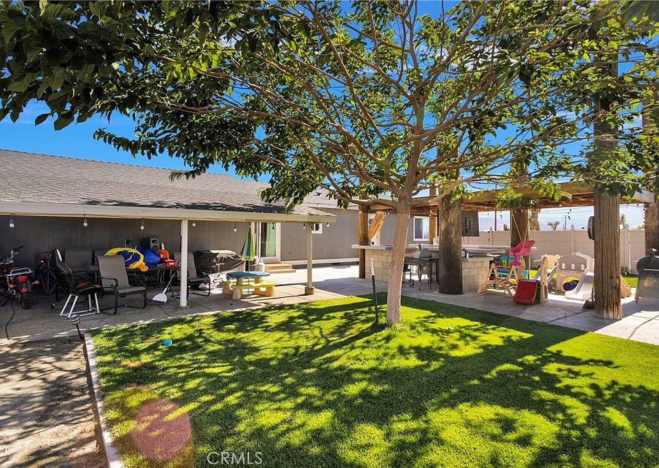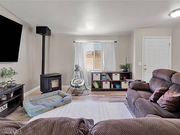 Super cute, clean & well kept 3 bedroom home just down the road from all the main shopping in Phelan! This home could easily have a 4th bedroom. Arriving here you will appreciate the automatic gate leading you through the property. Entering the home you will love the upgraded wood-look flooring in the main areas(carpet in bedrooms), fresh paint and open feel. Down the hall are the 2 guest bedrooms (could easily be 3 guest bedrooms) the guest bathroom and indoor laundry room with added storage and door to the back yard. The primary bedroom is spacious with a full bathroom. There are 3 mini split heat/ac units throughout the home providing you with maximum comfort. Plus the pellet stove in the living room will keep the home warm all winter long. The immediate backyard is fenced for privacy, with a custom BBQ area, countertops with bar seating, mature trees, plants and grass. The attached 2 car garage is an added perk!