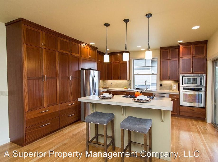 Must see home in NWX, close to downtown! - Amazing home and grounds on one-third acre lot in NorthWest Crossing. Natural wood finishes include white oak, mahogany and cedar. Formal living room w/ vaulted ceiling, gas fireplace and handcrafted mantel. Dining area open to kitchen w/ custom cabinets, Dacor appliances and island with raised eating area. Master suite w/ vaulted ceilings and luxurious bath on main level. Additional bedrooms and bonus room on lower level. Exterior decks on three levels. Open space beside and below contains side lawn, raised beds, natural areas. This home is absolutely stunning 12 Month Lease 1 dog considered Andee Jessee Licensed Property Manager in the State of Oregon www.RentAroundBend.com No Cats Allowed (RLNE2613028)