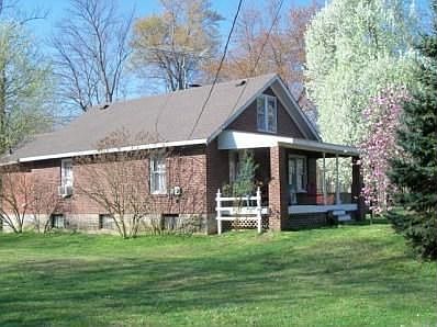 Mini Farm w/3 parcels!Home offers fully wrapped in Brick,7.5ac w/stocked pond,2Story Barn w/3 finished stables,tack room hay loft & 2 lean-tos!Detached Garage has furnace,A/C,Septic & rough-in for bath!New woodpellet furnace!Lots of woods!