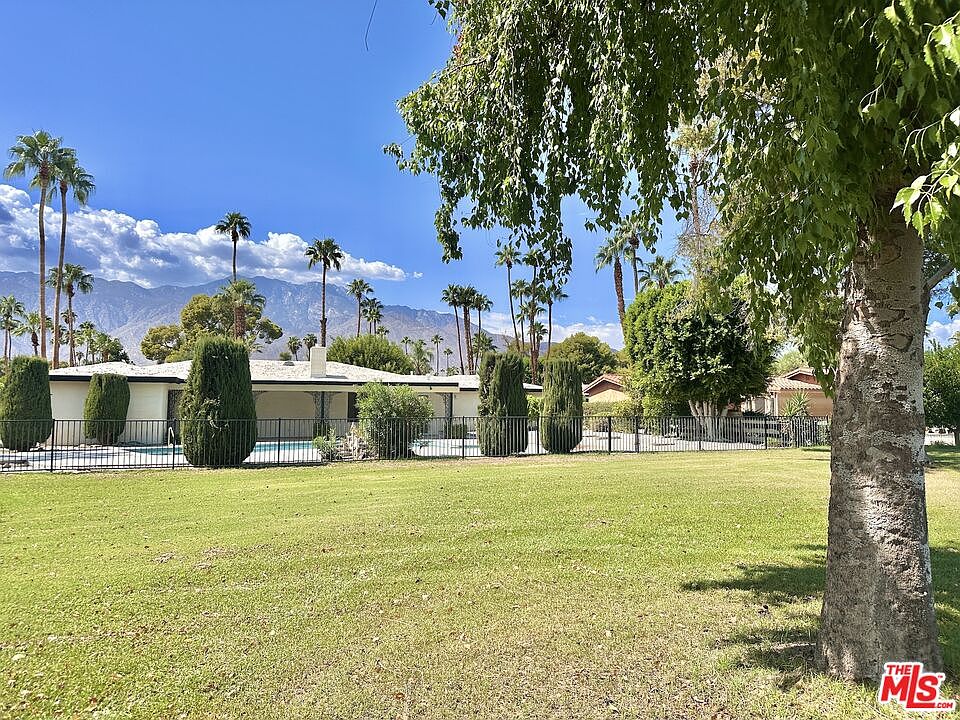 Enjoyed for 44 years and lovingly cared for, "NOLA in the Desert" is a rare midcentury remodel opportunity (a home on the same block just sold for $1.825 million!) with spectacular infinity golf course and mountain views, completely free of power lines. Experience the charm, serenity, and convenience of a fantastic neighborhood with no HOA, minimal car traffic, peaceful circular non-through streets, and everything you need just moments away. It's easy to see why so many choose to call this special place home for life. Infused with the romantic charm of New Orleans and set in Tahquitz Creek Golf Neighborhood - now one of South Palm Springs' most exclusive enclaves - and removed from the wind-prone northern and central neighborhoods, this 3-bedroom, 2-bathroom home with heated saltwater pool & spa offers a rare opportunity to redesign your dream home in a "forever" location. Every room, from the kitchen to the bedrooms, captures the drama of the San Jacinto or San Gorgonio mountain ranges and the peaceful beauty of the surrounding landscape. The open-concept layout flows seamlessly into a wide covered patio and expansive backyard, where a large sparkling pool and oversized spa await. Situated on a FEE SIMPLE (you own the land) lot of just under a quarter of an acre with ample room to expand or build a casita or ADU, it's a heaven for outdoor entertaining with panoramic views. Tahquitz Creek Golf Neighborhood is one of the very rare Golf communities free of HOA restrictions in the USA and features just a handful of homes, generously spaced and separated by fairways and greenbelts. This creates a true sense of retreat and offers residents the rare lifestyle of enjoying daily walks along the greens after golf, or exploring the multiple nearby bike paths with jaw dropping 360 degree views of the majestic mountains that surround the Coachella Valley. Located just three minutes from the only Trader Joe's in Palm Springs, Vons, and Sprouts, this incredibly special place enjoys the convenience of city living without compromising its quiet charm only 10 minutes from the airport. More than a home, Nola in the Desert is a serene sanctuary with boundless potential your dreamy Palm Springs hideaway and a terrific short or long investment in one of the few communities that hasn't yet reached the 20% short-term rental license cap. PHOTOS VIRTUALLY STAGED.