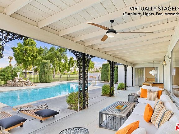 Offered for the first time in 44 years and lovingly cared for, 'NOLA in the Desert' is a rare midcentury remodel opportunity on (house on same block just sold for 1.8 Million!) with fantastic golf course and mountain views and no power lines in sight. Infused with the romantic charm of New Orleans and set in one of South Palm Springs' most exclusive enclaves - Tahquitz Creek Golf Neighborhood - far removed from the wind-prone northern and central neighborhoods, this 3-bedroom, 2-bathroom home offers a rare blend of serenity, privacy, and convenience. Every room, from the kitchen to the bedrooms, captures the drama of the San Jacinto or San Gorgonio mountain ranges and the peaceful beauty of the surrounding landscape. The open-concept layout flows seamlessly into a wide covered patio and expansive backyard, where a large sparkling pool and oversized spa await. Situated on a lot of just under a quarter of an acre on FEE SIMPLE land, the home provides ample space for an ADU or outdoor entertaining, all with panoramic views and exceptional privacy. Tahquitz Creek Golf Neighborhood is one of the very rare Golf communities free of HOA restrictions in the USA and features just a handful of homes, generously spaced and separated by fairways and greenbelts. This creates a true sense of retreat and offers residents the rare lifestyle of enjoying daily walks along the greens after golf, or exploring the multiple nearby bike paths with jaw dropping 360 degree views of the majestic mountains that surround the Coachella Valley. Located just three minutes from the only Trader Joe's in Palm Springs, Vons, and Sprouts, this incredibly special place enjoys the convenience of city living without compromising its quiet charm only 10 minutes from the airport. More than a home, Nola in the Desert is a sanctuary with boundless potential to become your dreamy Palm Springs hideaway. PHOTOS VIRTUALLY STAGED.