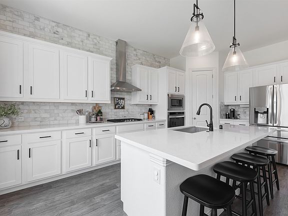 Step inside to find gorgeous hardwood flooring flowing throughout the main living areas, complemented by upgraded carpeting and ceramic tile selections. The heart of the home is the chef’s kitchen, featuring a large island, gleaming quartz countertops, gorgeous Carrara marble backsplash, a gas range, and plenty of cabinet space; ideal for both everyday living and entertaining.