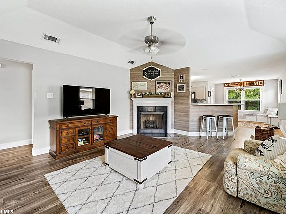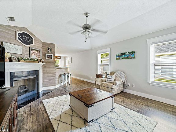 Come see this cute home located in West Mobile! This 2008 built, 3 bedroom, 2 bath features a bronze fortified roof (2017) and a/c unit (2018). The home has tons of upgrades that give it the farmhouse feel from the new rustic luxury vinyl plank floors and lighting to the trim around the new windows. From the moment you step in this home, you are drawn to the accent wall showcasing the gas fireplace and raised ceilings in the spacious family room. The breakfast bar separates the kitchen from this space thus providing an open concept and plenty of counter space. The kitchen has stainless steel appliances (replaced in 2016), custom organizers for pantry and cabinets, and painted cabinets. The quaint fenced in backyard with shed offers a great space for entertaining and grilling out with friends without a ton of upkeep. Some other extras include 2” faux wood blinds throughout, fresh landscaping & sprinkler system (2018), smart home Alexa thermostat, and Arlo home security system. Call your favorite Realtor to schedule your personal showing! All measurements are approximate and not guaranteed, buyer to verify.