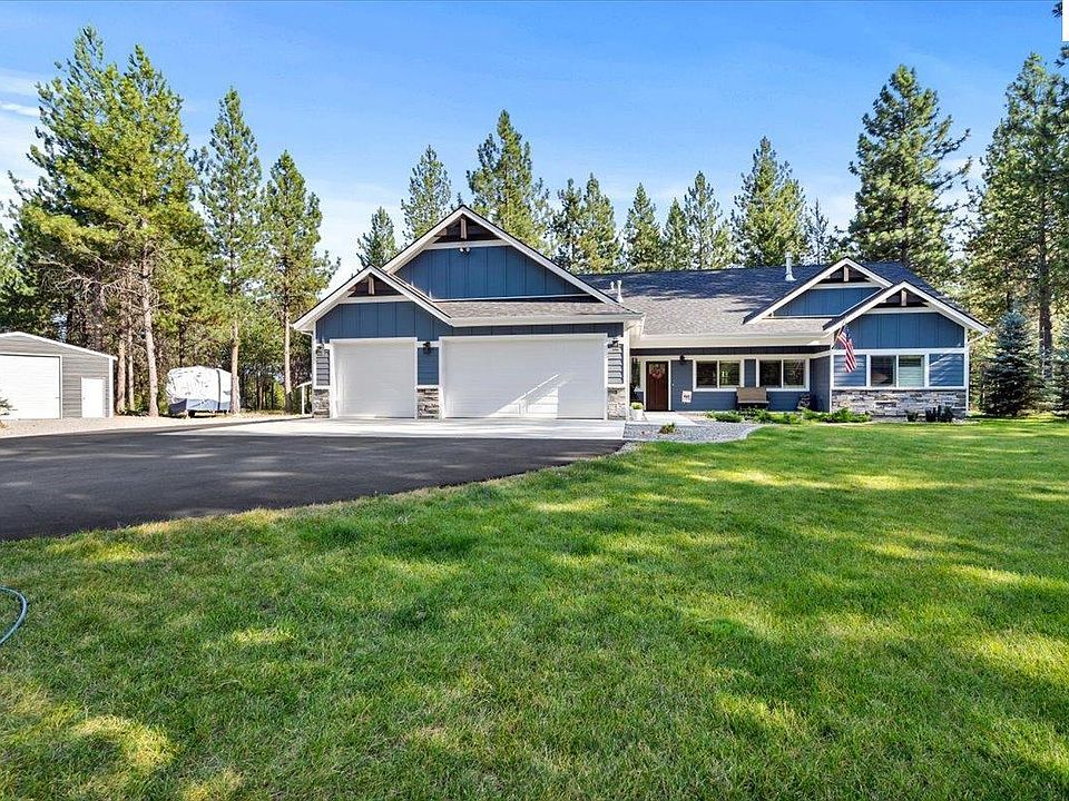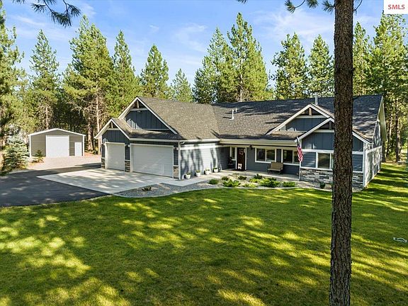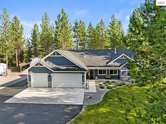 Stunning custom home situated on 4.78 treed acres in highly sought-after Lone Mountain Estates. Close to multiple area lakes and golf course. This pristine home is located in the desirable Lakeland School District, boasts 2050 sqft, 3 bedrooms, 2.5 bathrooms, 24x30 shop, 16x32 storage shed w/loft & lean to, open concept living room w/gas fireplace, beautiful mantel & masonry accents, family room & separate office. The chef's kitchen offers a large island w/breakfast bar & granite countertops, walk in pantry, and upgraded stainless appliances. Large master suite offers spacious master bathroom with dual vanity sinks, tiled walk-in shower, large soaking tub & walk-in closet. Enjoy all the privacy while relaxing or entertaining from the huge extended patio with expansive park-like views. Lot features sprinkler system in front and back, invisible fence for dogs, fenced off garden area and fire pit. Don't miss seeing this incredible home!