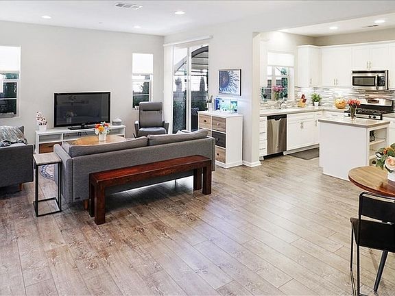 This is a fantastic opportunity to own your own home. Shows like a model home. Beautiful upgrades include quartz countertops in kitchen with custom glass backsplash, stainless appliances, tile flooring downstairs and in baths, and upgraded carpet upstairs. Large master bedroom with spacious walk in closet and quartz countertops with dual sinks in master bathroom. Sliding patio door leads to spacious outdoor living area which is perfect for relaxing and enjoying cool summer nights. Gated community is situated near local businesses, close to Metrolink, great shopping and all Santa Clarita has to offer. Lovely banquet facility and sparkling community pool, as well as shared garden and tot lot for the little ones. Fun for everyone!