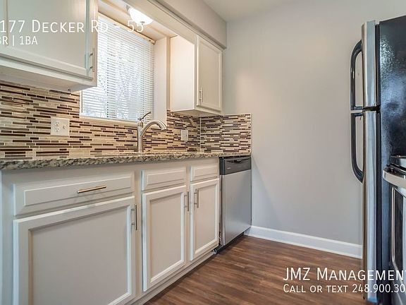Welcome to the beautiful Z on Decker Apartments conveniently located in Walled Lake, MI 48390. Boasting between 850 and 1,000 SF depending on the floor plan. Completely updated inside with all new vinyl plank flooring in the updated kitchen with new cabinets, granite counters and most units have stainless steel appliances and dishwashers. Freshly painted throughout and award winning Walled Lake School District, your own private storage unit, large backyards, and coin operated laundry machine in all basements. We allow cats. Please inquire for the additional fees associated with a pet. Z on Decker is nestled minutes from downtown Walled Lake in the heart of Commerce Township. It is surrounded by lakes, and is minutes from major Highways (M5, 696, 275, 96), Walled Lake Central, and Twelve Oaks Mall. Upper level unit.