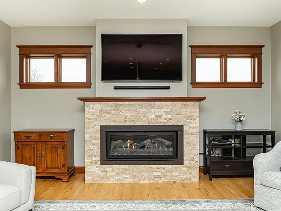 Experience effortless living in this beautifully designed walkout ranch with standout curb appeal and panoramic views that create an immediate sense of arrival. Thoughtful architecture and quality finishes shine throughout, beginning with the aggregate front walkway and extending to the expansive three-car garage and LP SmartSide siding paired with Marvin windows for enduring style and performance. Inside, warm cherry cabinetry and rich woodwork set the tone, complemented by hardwood floors across most of the main level and Cambria countertops on both floors. The open-concept layout is ideal for everyday living and entertaining alike, while the covered back patio with Pergola offers a unique outdoor retreat perfectly positioned to enjoy the sweeping views. The main floor is anchored by a serene primary suite, private office, and convenient laundry, allowing true one-level living. The primary bath with heated floors and additional bathrooms are finished with beautiful tilework, reflecting the home's attention to detail. The walkout lower level expands your living space with three additional bedrooms, a spacious family room, and a full bath perfect for guests or multigenerational living. Modern comforts are seamlessly integrated, including hardwired Ethernet, manual zoned Nest thermostats, a four-zone sprinkler system, buried downspouts, and the peace of mind that all appliances stay. Located in a welcoming neighborhood with a financially sound HOA, residents enjoy a strong community feel complete with a social committee and festive holiday gatherings. With easy access to Hwy 52 and everything Rochester has to offer and beyond, this home delivers the perfect balance of quality, comfort, and connection.