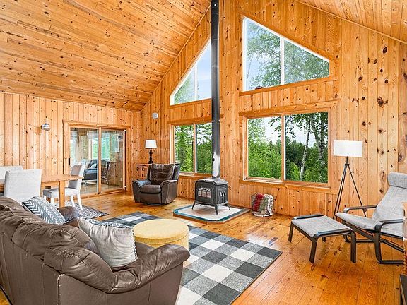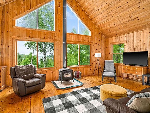 The perfect Northwoods Escape just 40 MINUTES north of Duluth! This fabulous property has over 800 feet of water frontage on 4 private acres at the end of a quiet road! WOW! You feel totally alone out here! Property includes private trails, private bay, secluded fishing spots and so much more. This property within 40 minutes of Duluth has all the Boundary Water feels! The cabin built in 1994 has huge vaulted ceilings, big windows, and phenomenal panoramic views of the water and trees. You will love it here during all seasons! The open floor plan is so perfect with a wood burning fireplace facing the lake. There is a main floor bedroom and a brand new bathroom! Upstairs there are two more bedrooms, the perfect space for your friends and family. The oversized screen porch is such a fun spot to hang out after a day outside with big windows and natural light galore. The 6+ person Sauna with changing room is the icing on the cake perched up to captivate the view with big modern windows and a modern sauna stove that is WiFi enabled! Set it on your way and you can sauna right when you arrive! This property has StarLink Internet that is super fast so you can stay connected when needed. There are multiple private trails that loop around the property and even a small bridge. The permanent dock is in your bay and you feel totally alone here, then, you get to pull out into the lake for big lake fun! Surrounded by state owned land too. There is a large storage shed and boat house by the water to store your water toys. So much has been done in the last few years like a new drilled well, holding tank, bathroom and sauna. Inquire for complete list! Come check out this once in a lifetime spot on Whiteface where you get the wooded privacy of a cabin at the end of the road AND the private lakeshore! A rare find!