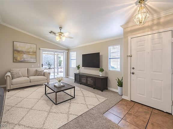 Tucked inside the highly sought-after gated community of Green Valley Ranch, this charming single-story home truly checks all the boxes! Located near a cul-de-sac with extra guest parking, it features a functional 3-bedroom layout with vaulted ceilings, tons of natural light and a spacious laundry room. Bedrooms are generously sized and offer great privacy, making it ideal for families or guests. Zoned for top-rated public schools, this home is perfect for those who value education. Recent updates include brand new carpet, modern blinds, and new sleek stainless steel appliances—completely move-in ready! The private backyard offers a peaceful retreat with mature trees, full landscaping and a covered patio perfect for unwinding. All appliances are included and the two-car garage adds convenience and storage. Just minutes from parks, the 215 Beltway, top-tier shopping, dining GVR Resort and the District. This home blends location, lifestyle and comfort all in one unbeatable package.