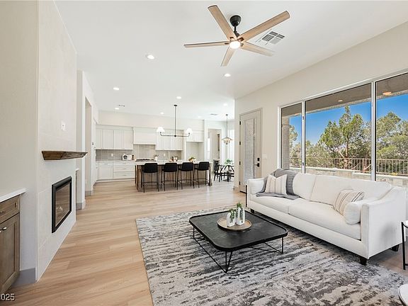 This stunning single-story home offers the perfect blend of modern luxury and comfort, fully remodeled with high-end finishes throughout. Boasting an open floor plan, the spacious layout includes three generously sized bedrooms plus a dedicated office—ideal for working from home or creative pursuits. The heart of the home features a sleek kitchen outfitted with stainless steel appliances, seamlessly connecting to the living and dining areas for effortless entertaining. Step outside to your private backyard oasis with a sparkling pool and enjoy breathtaking city views. Additional highlights include a two-car garage and the added privacy and tranquility of an age-restricted community. This home truly has it all—style, functionality, and an unbeatable setting.