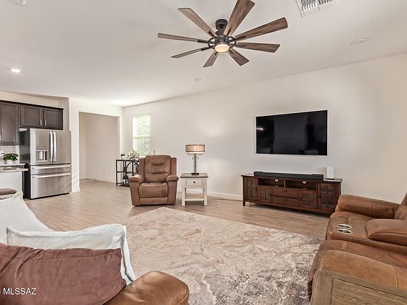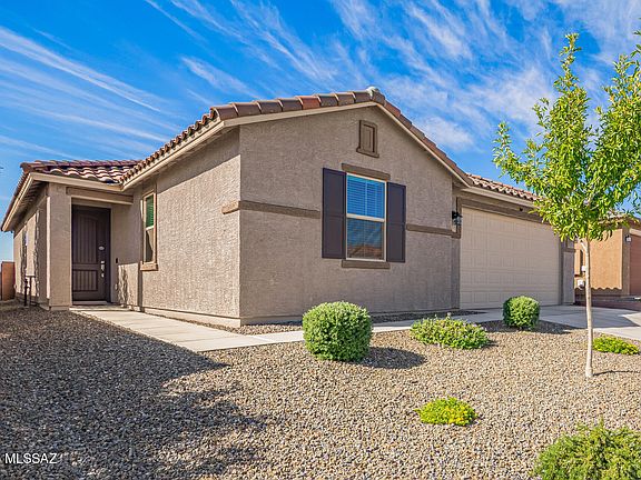 Take pride in this highly upgraded 3-bedroom Tucson home featuring over $80K in upgrades! Enjoy wood-look porcelain tile, recessed lighting, and an open floor plan perfect for entertaining. The kitchen offers upgraded soft-close cabinets with pull-outs, granite counters, subway tile backsplash, and stainless appliances. The primary suite includes an upgraded shower and dual sinks. Additional highlights include whole-house insulation (including the garage) and a belt-driven garage door opener. Enjoy the mountain views and wonderful Tucson sunsets from your extended covered patio with stucco columns and a tile roof. This home is move-in ready and beautifully finished!